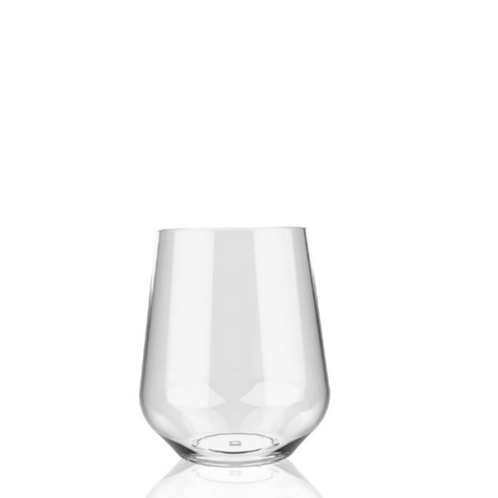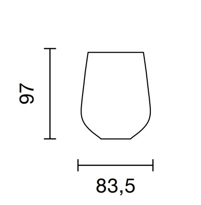 Cor: Transparente. Capacidade: 390 mL. Altura: 97 mm. Diâmetro máximo: 83,5 mm. Material: Tritan™ assoprado. Uso recomendado: É utilizado principalmente para servir água. Usos alternativos: também pode se servir sucos, uísque, rum e outras bebidas de alta qualidade. Drinks e coquetéis, em exposição ao ar livre, serviço de praia e piscina, e para refeições em exteriores. Mercado de referência: Ho.re.ca, B2B, e Pessoa física. |